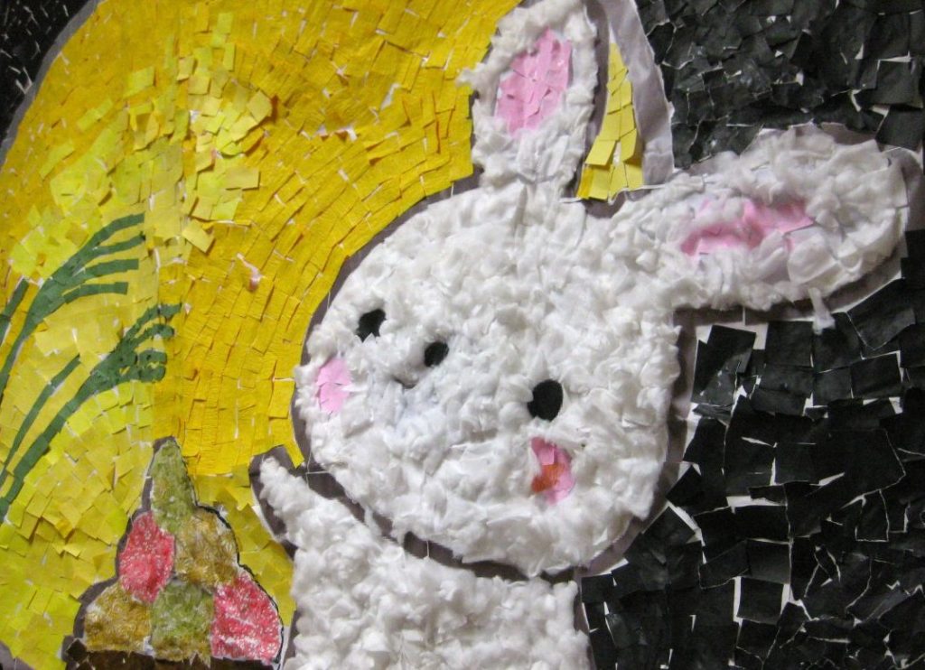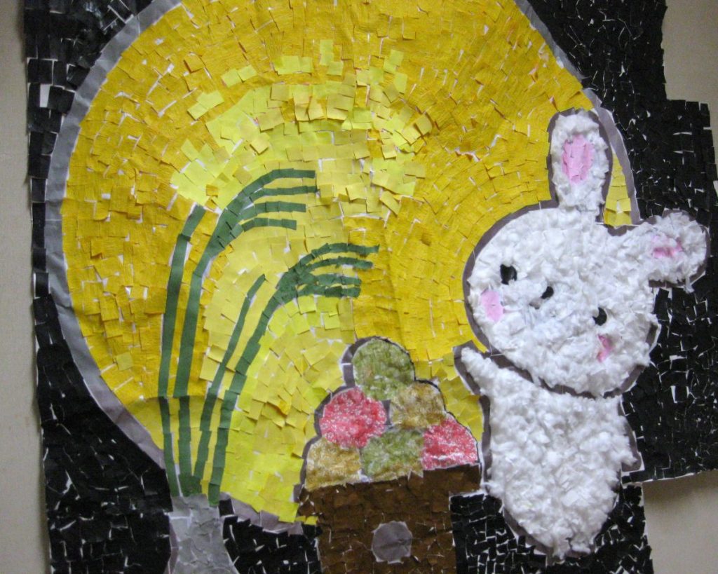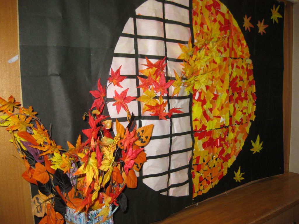 デイサービスの壁面には今月も皆さんと作成したものを飾り付けました。